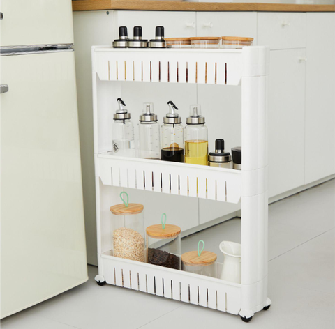 Nhựa Kệ nhà bếp phòng tắm lưu trữ giá sàn nhiều lớp khe dày lưu trữ giá